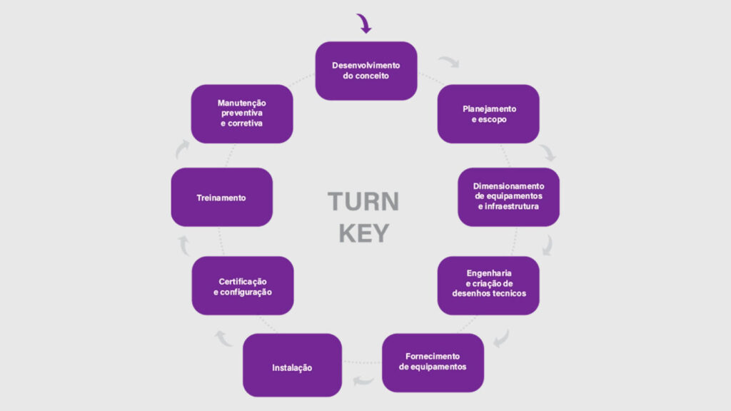 O fornecimento Turnkey é uma modalidade que consiste no oferecimento de um pacote completo de serviços e soluções para um projeto, contemplando todas as suas etapas, desde a consultoria inicial até a entrega.